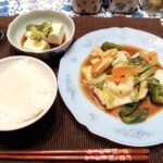 今晩は、残り物だけで作ってくれました。 小松菜と卵のオイスター炒め。 筍と椎茸と揚げの炊いたん(お揚げさんに味がしゅんでいて、とても美味しい出汁味)。 牛肉と玉ねぎ人参と春雨を甘辛く炒め(牛脂と玉ねぎ …