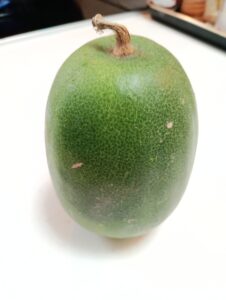 近所のスーパーに置いてある冬瓜は、切って売っているのでわからなかった。