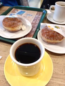 食後の「コナコーヒー」を飲むつもりで入ったのに、マラサダ(ハワイ定番のドーナツ!)が充実していたので・・食べちゃった・・
