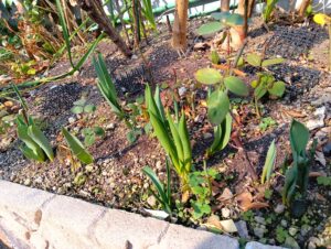 そんなチューリップは芽が出ても花芽が付いていなく、ヒョロヒョロと伸びるだけ。