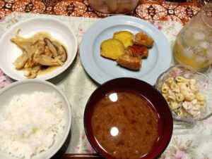 リタイアして5年の大乃をとこ(男)。体にやさしい夕食を作っています。 今日も夏健康献立。 マグロの山芋かけは、マグロに下味をつけてあるのでしっかりした味です。家庭菜園大葉を添えて。 メインは、中華味の …