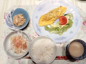 今晩のメインはひき肉たっぷりのオムレツ。