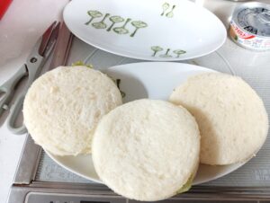 子供用に可愛い丸いサンドウィッチを作り、好評でした。