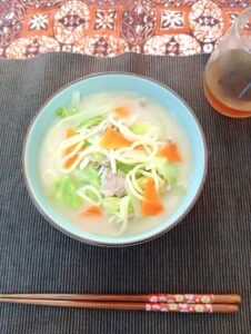 今日のランチはフライパンで出来るチャンポン麺で、具材がたっぷりで食べ応え満点。