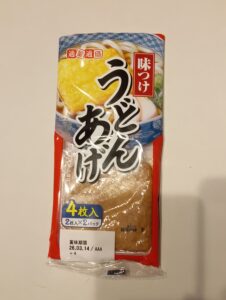 我家の常備品「味付けうどん揚げ」を細く切って食べやすく。