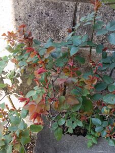 バラは赤緑色で、元気な枝全部からいっせいに出てくるので勢いを感じます。