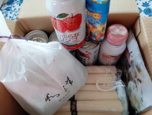 友人から箱が届いたので開けると、おいしそうなものが一杯入っていてウレシイ。玉手箱のよう。