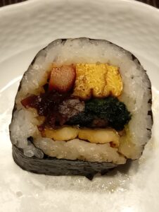 2番は炙り穴子と焼目入り玉子焼に、椎茸・おぼろ・カニカマ・干ぴょう・ほうれん草・海老。