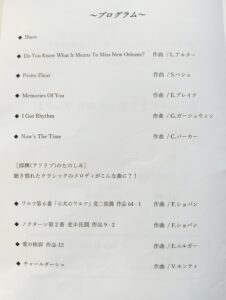 クラッシックをピアノとクラリネットで演奏したり、即興(アドリブ)の楽しさいっぱいでした。